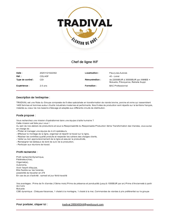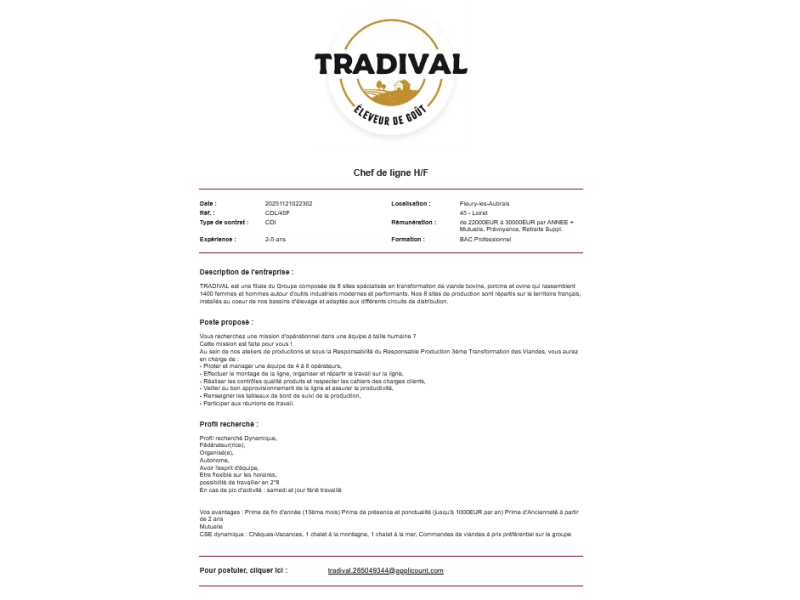 Contrat de travail 35h ou 39h à définir avec la personne.