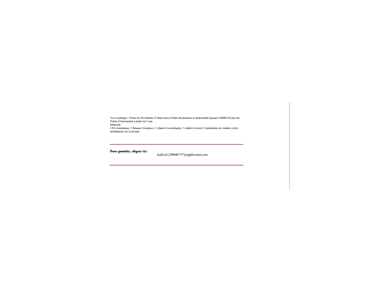 Vous pouvez envoyer vos CV et lettres de motivation à l'adresse suivante:
