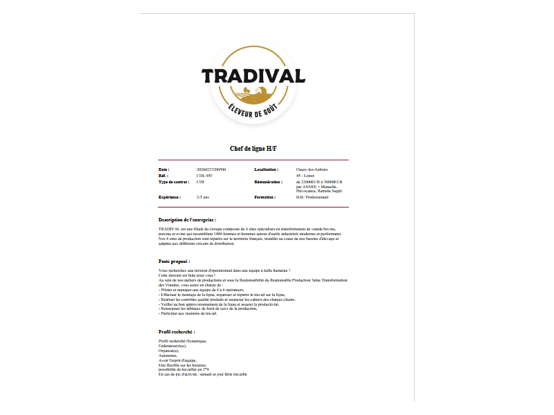 La personne doit être capable de devenir rapidement autonome avec une période d'adaptation et apprécier travailler en autonomie et également apprécier travailler en équipe.