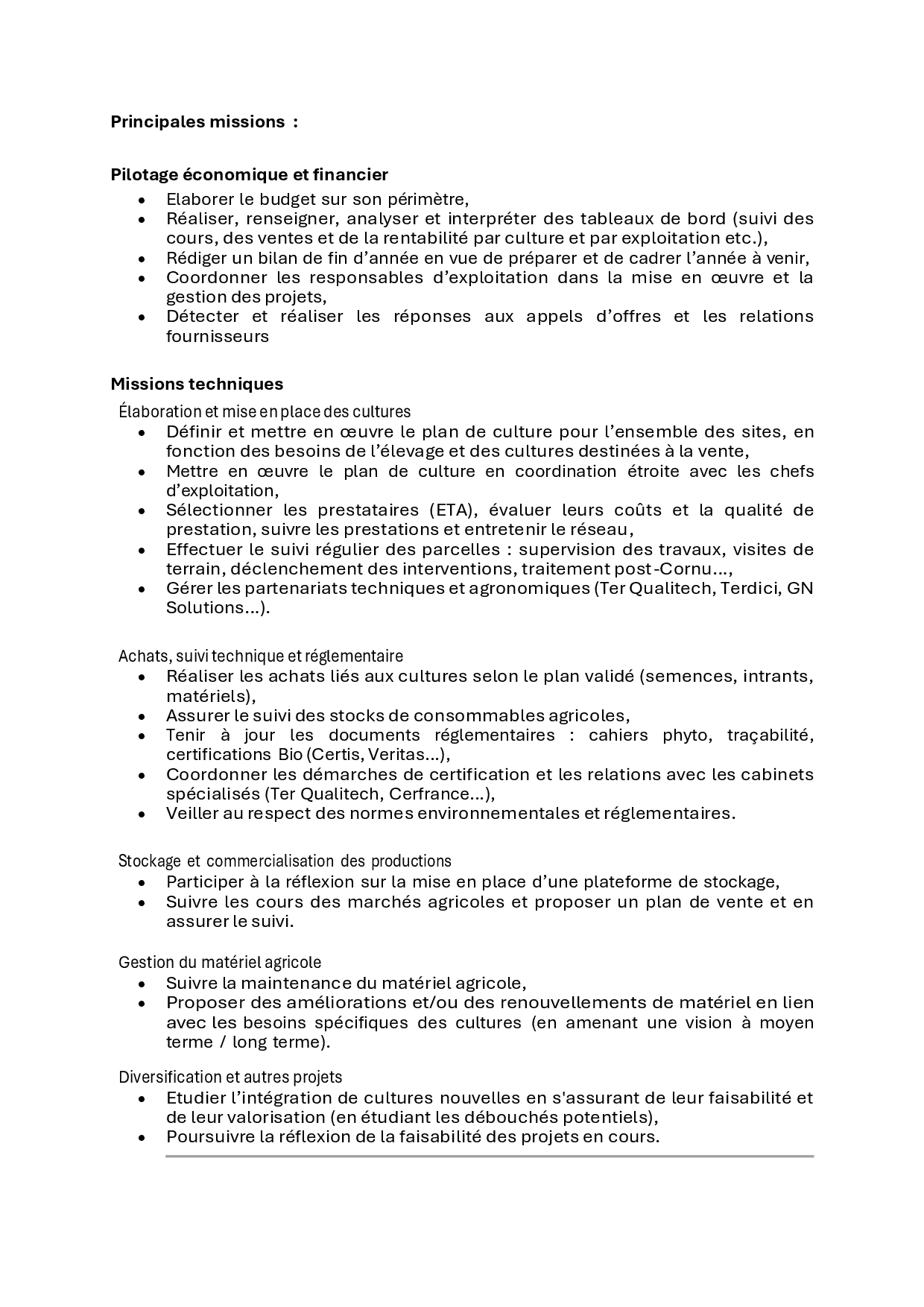 Vous serez amené à vous occuper de l'alimentation des animaux, des cultures, de la fenaison, des moissons, de l'entretien du parcellaire, de l'entretien du matériel, de la manutention des animaux...
