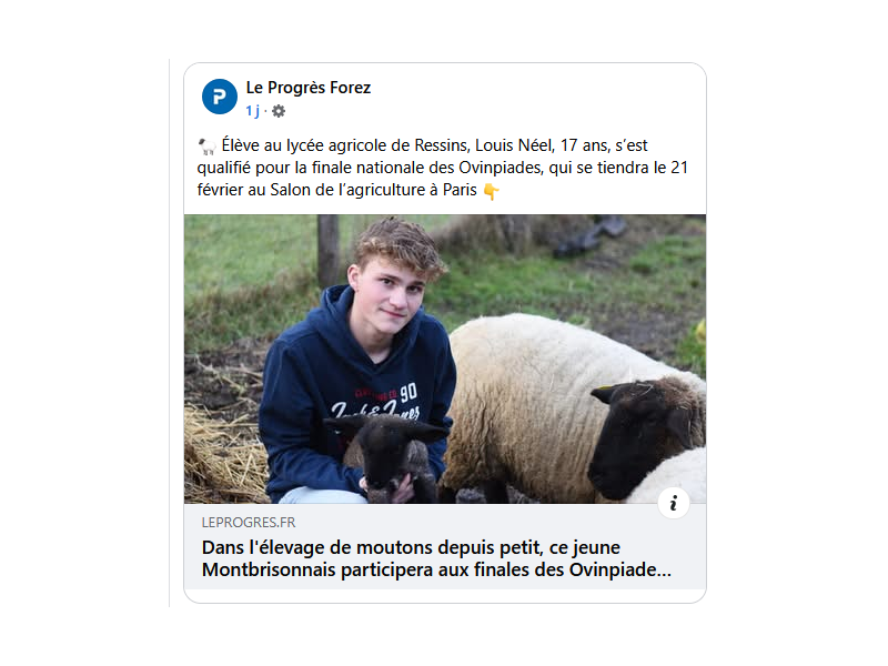 Un bel article dans le journal Le Progrès, plus d'info : https://www.leprogres.fr/economie/2026/02/03/ce-jeune-montbrisonnais-participera-aux-finales-des-ovinpiades-a-paris?at_content=link&at_term=leprogres.forez&at_source=nonli