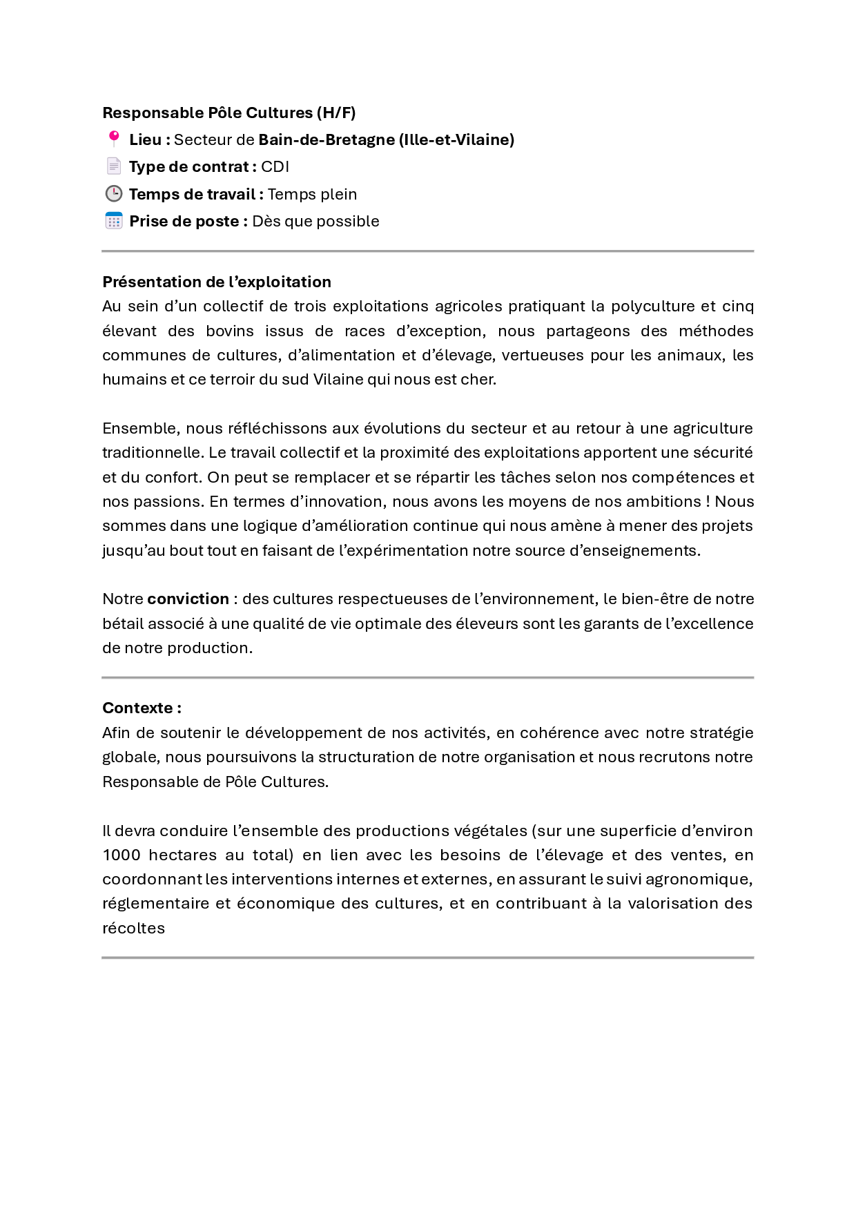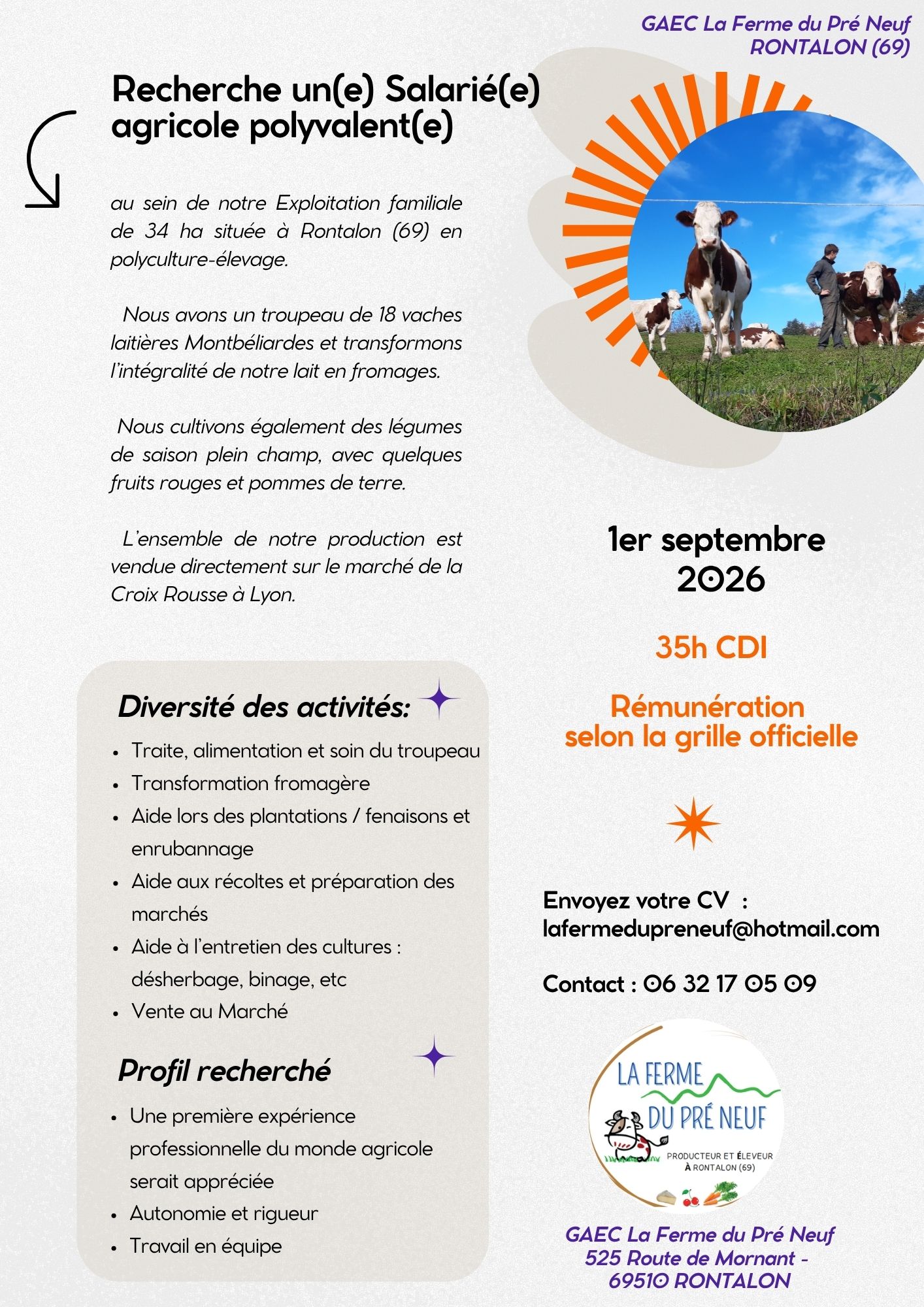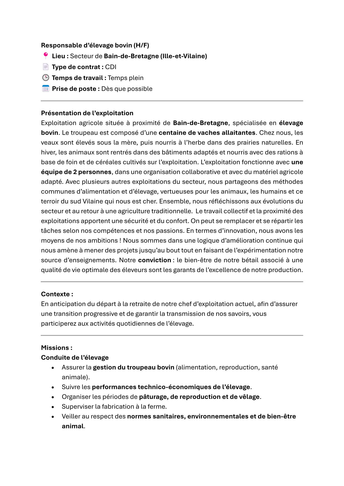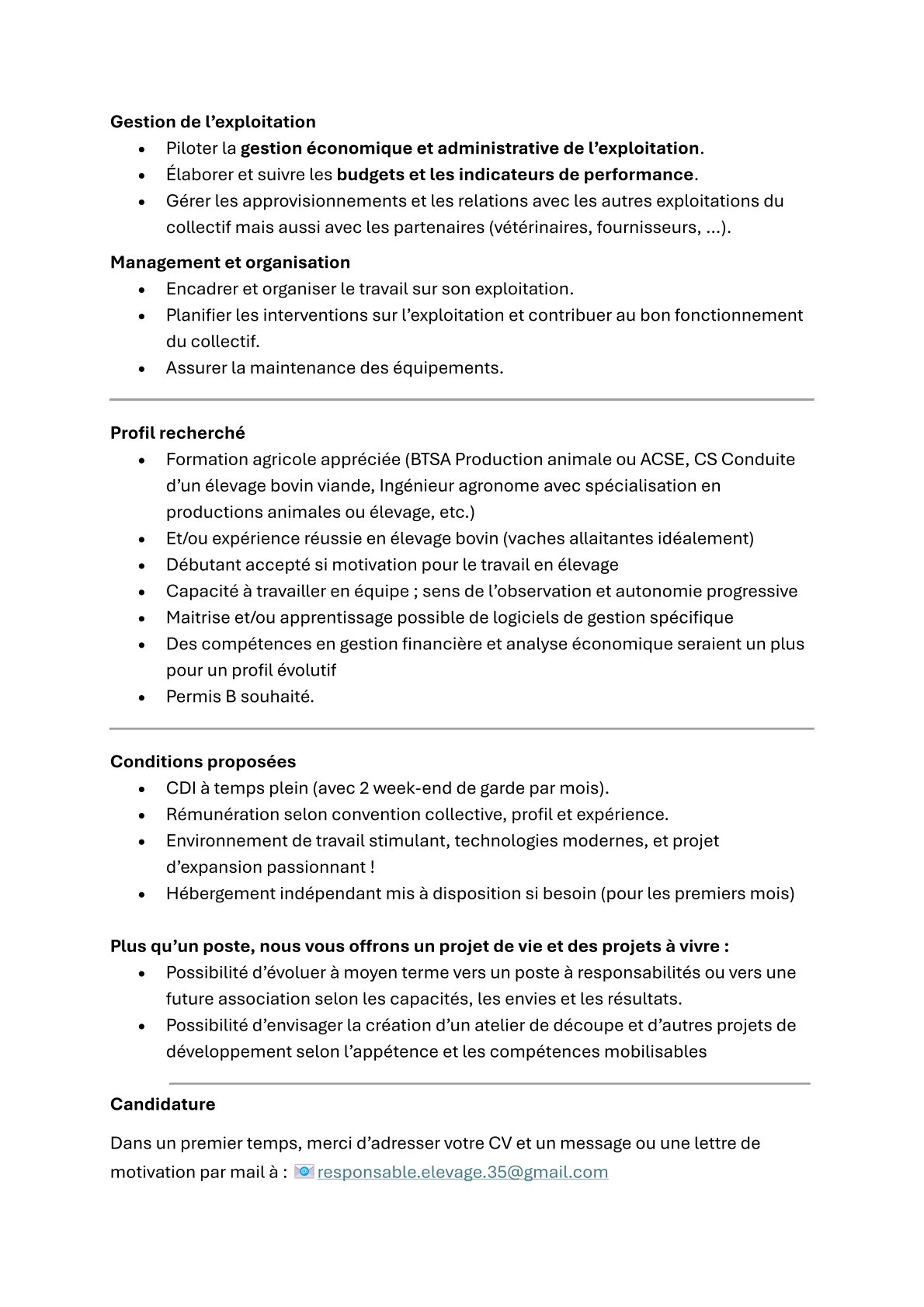 Nous recherchons une personne polyvalente qui aime le contact avec les animaux, qui sait conduire différents engins agricoles. Une personne rigoureuse dans son travail sera très appréciée.