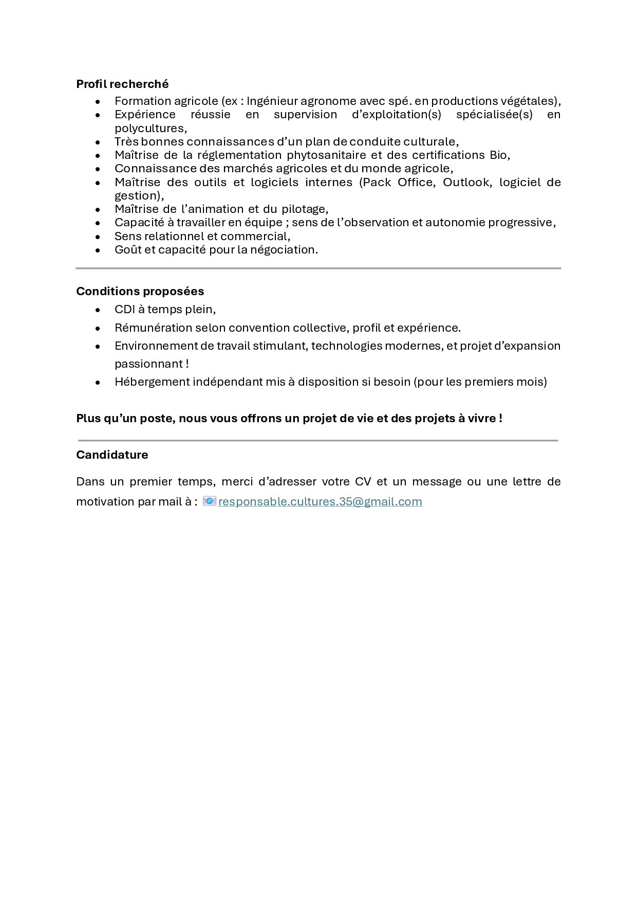 Nous recherchons un(e) salarié(e) agricole pour début mars 2023.